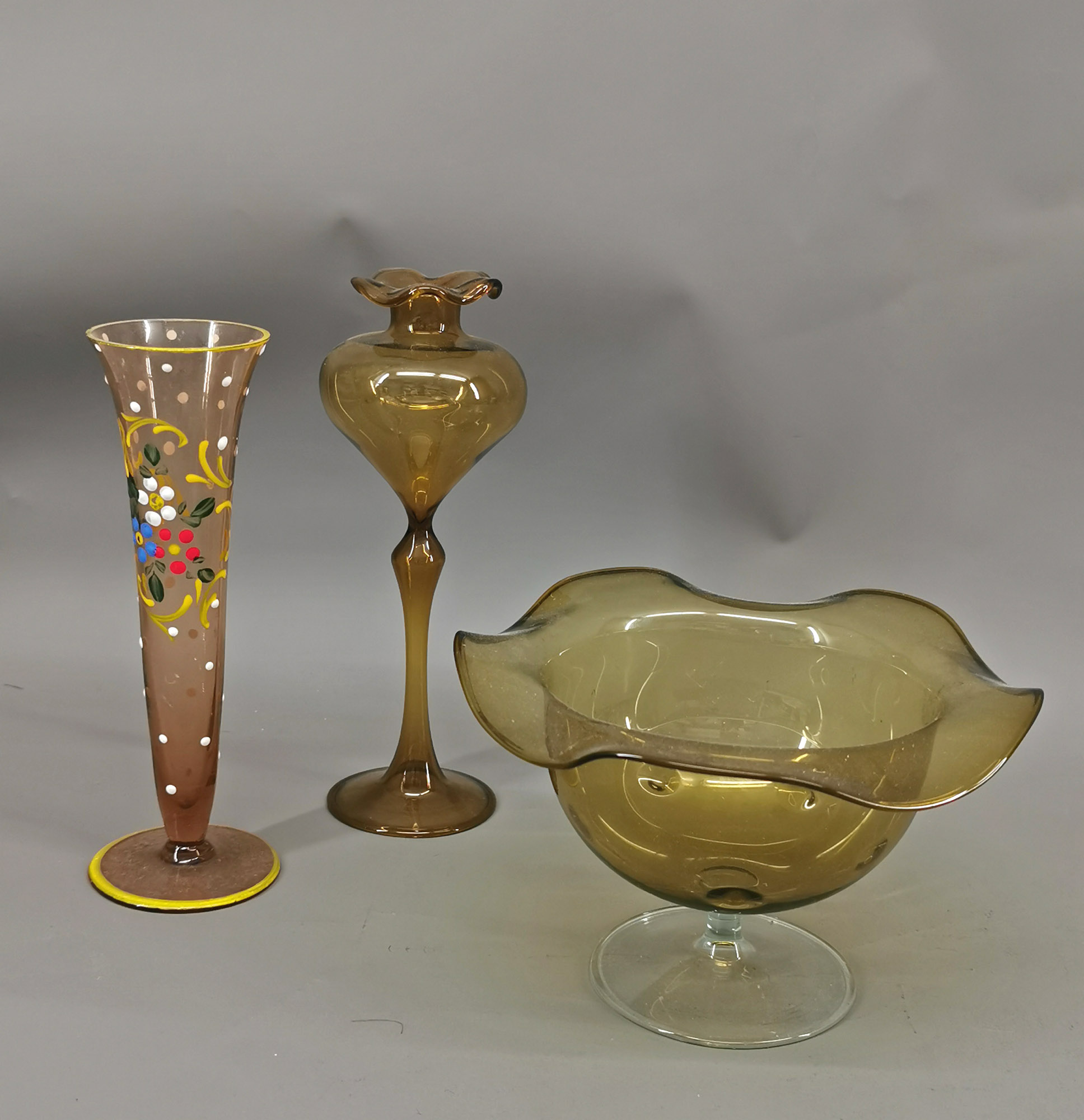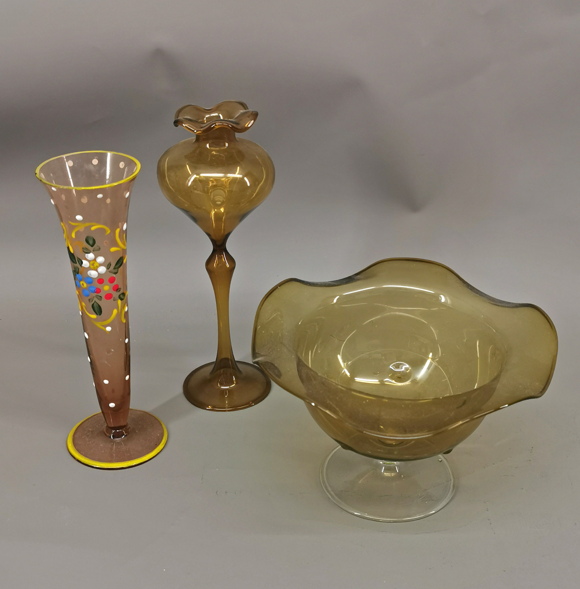 Lausch, Thüringen, vor der Lampe mundgeblasen, eine Vase mit Emailmalerei, Schale, Leuchter Vase, H 10 bis 20cm
