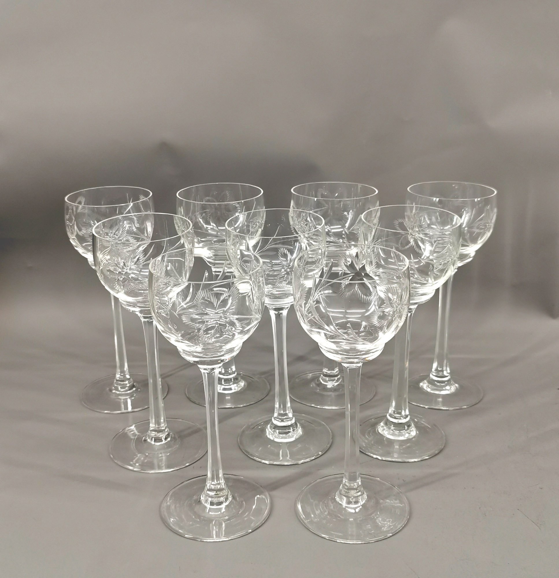 um 1925, deutsch, farbloses Kristallglas, Stil facettiert geschliffen, Kuppa mit geschliffener Blumenbordüre, H 18,5 cm