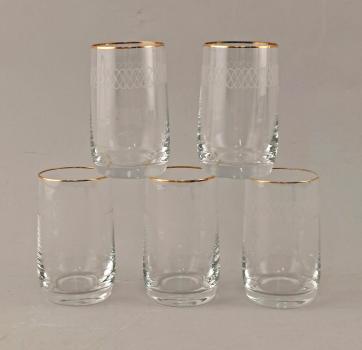 5 kleine Bechergläser Goldrand und Wellenschliff