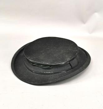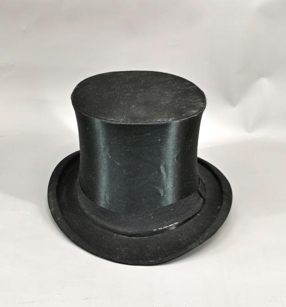 klappbarer Herrenzylinder, schwarzer Seidenstoff, Alters- und Gebrauchsspuren, Innendurchmesser 16 bzw. 19cm