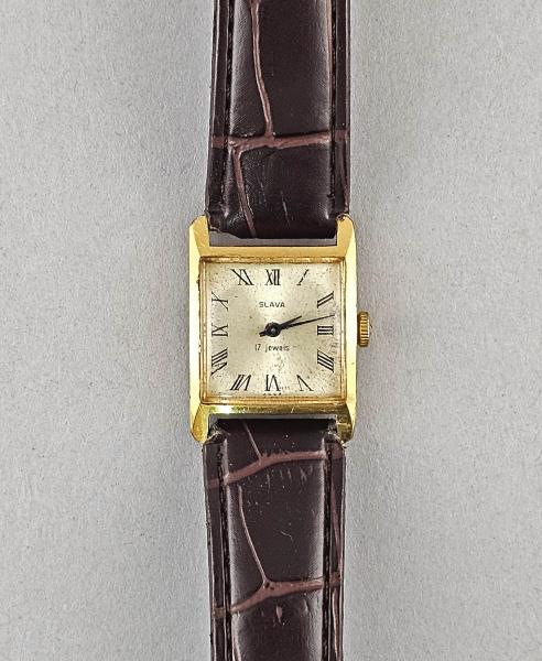 um 1960, USSR, rechteckiges Zifferblatt mit römischen Ziffern, mech. Werk mit Handaufzug (17 Steine), Werk läuft, Alters- und Gebrauchsspuren