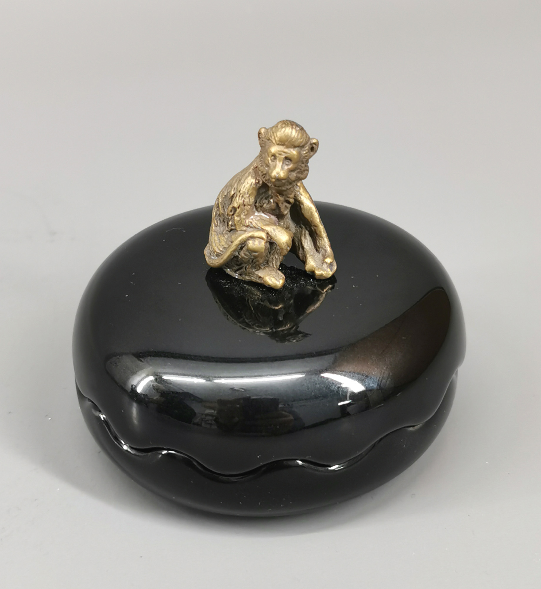 Deckeldose mit Affenfigur