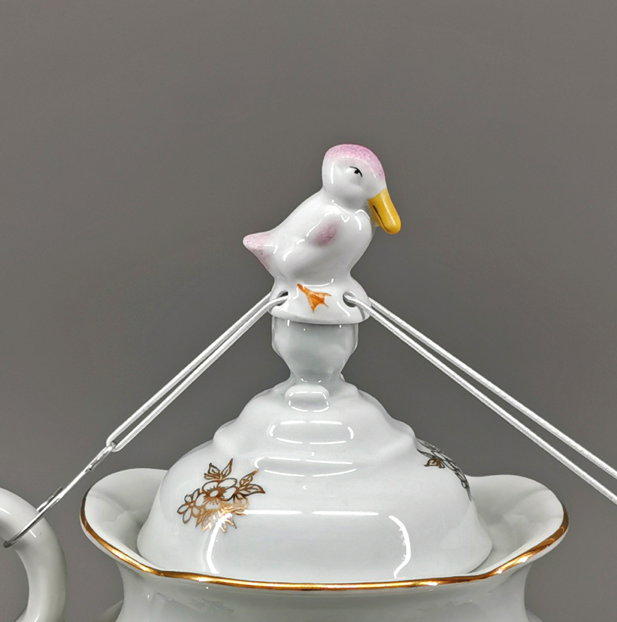 gemarkt Lindner-Porzellanfabrik, Küps, Bayern, Tropfenfänger aus Weißporzellan, aufglasurhandbemalt, H4cm