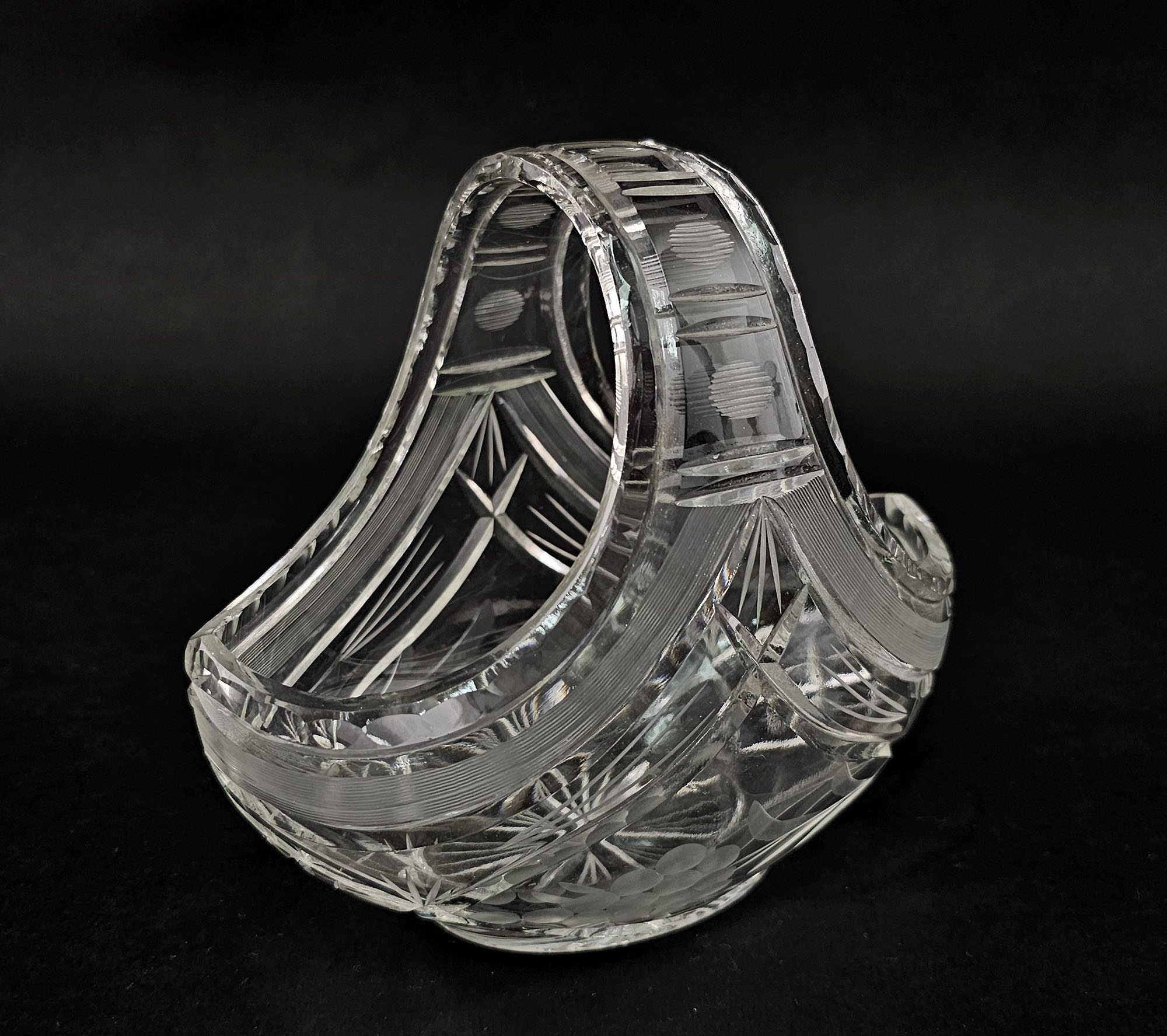 farbloses Glas handgeschliffen mit geometrischem Dekor, 16x10x14cm