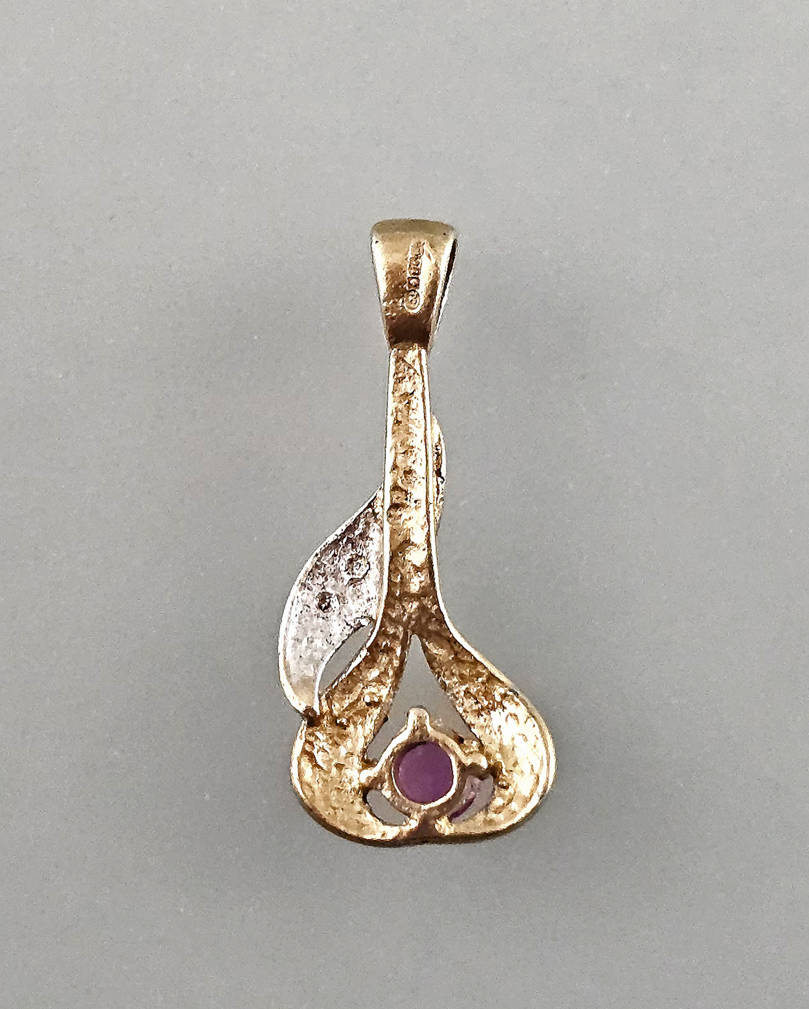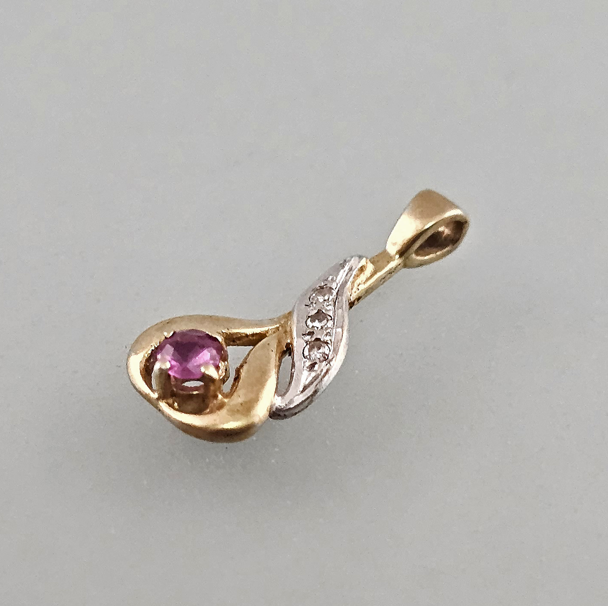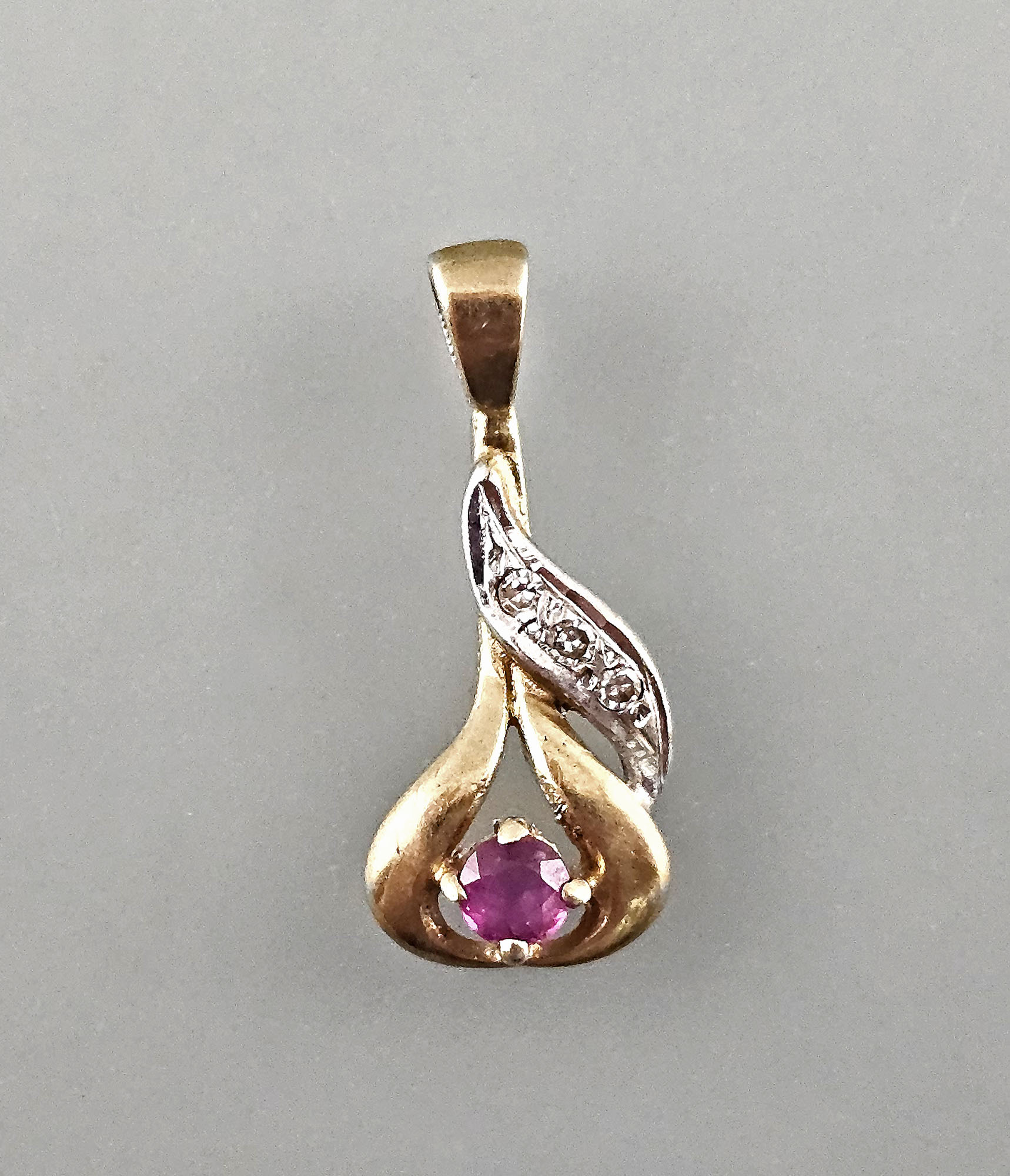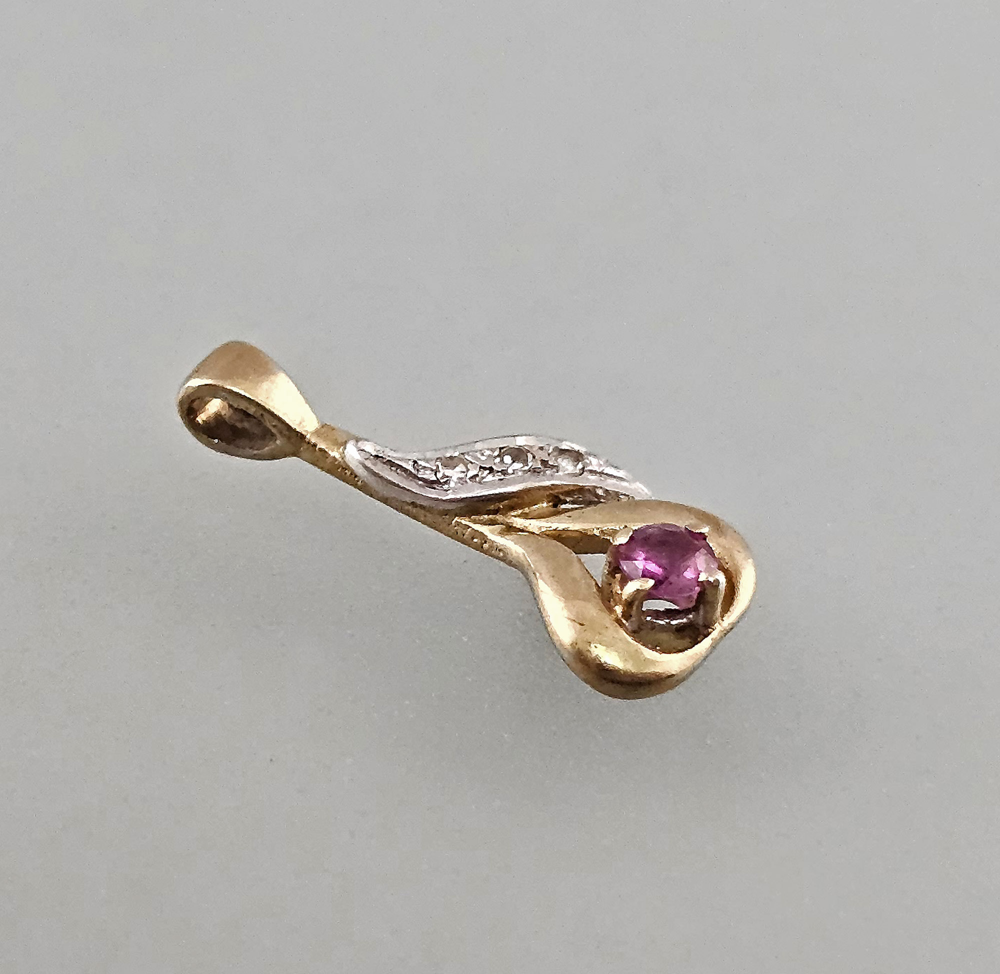 375er GG, 0,89 g, floral gestaltet mit kleinem rund facettiertem Topas und 3 kl. Brillanten besetzt, L 2 cm