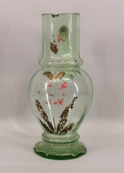 19.Jh., mundgeblasen aus grünem Glas mit Bodenabriss, Reste von Bemalung, angeschmolzener, gekämmter Henkel, Altersspuren, H30cm
