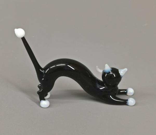 Lauscha Glasfigur Katze schwarz groß 6,5x1,5x4cm