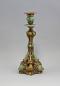 neuzeitliche Fertigung nach historischem Vorbild, Porzellan/Bronze, dreipassiger Stand, durchbrochen gearbeiteter Sockel, üppig releifiert verziert im Historismus-Stil mit Akanthusblatt und Rocaillen, blaustrierter Schaft mehrere eingefasste Cabochons aus mintgrün craqueliertem Porzellan, H 32 cm