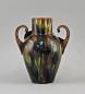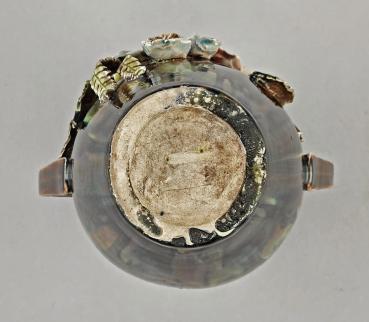 ungemarklt, um 1900, heller Scherben, Laufglasur, unterglasurhandbemalt, handmodellierte BlumenapplikationH 20 cm, B 18 cm, kleine Fehlstellen und Brandeinschlüsse