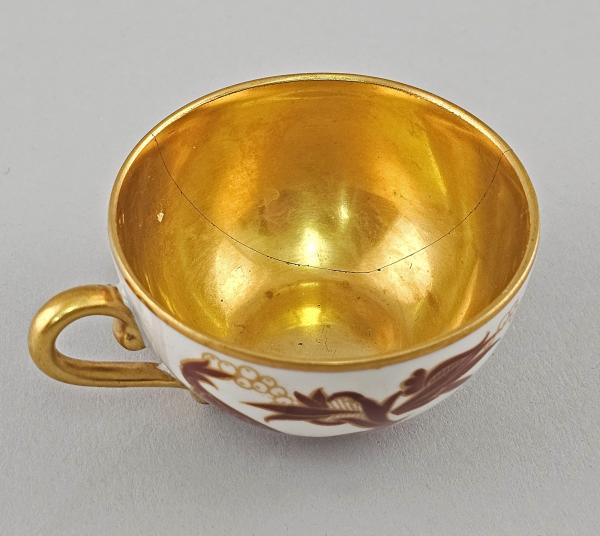 gemarkt Rosenthal Selb, Bayern, Vorkrieg, bizarres, stilisiertes Dekor aus Vögeln und Pflanzen in Rot, Gold und Schwarz, Goldmalerei, 10,5x4cm