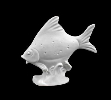 gemarkt Reichenbach, Thüringen, neuzeitliche Fertigung, naturgetreue Ausformung eines Fisches, Bisquitporzellan, L 12 cm, H 10,5 cm