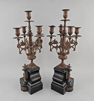 19.Jh., kupferfarbenes Metall auf getrepptem schwarzen Steinsockel, jeweils durchbrochen verzierte Leuchterarme an Balustermittelschaft, 5-flammig, Alters- und Gebrauchsspuren, 17,5x10x56cm ,KEIN VERSAND MÖGLICH !Bitte geben Sie beim Checkout die Option "Selbstabholung" an. Dieser Artikel wird nicht versendet. Bei der Option "Deutsche Post" kommt kein Kaufvertrag mit Lieferung zustande.Sie können diesen Artikel nur abholen oder eine Spedition mit der Abholung beauftragen. Gern empfehlen wir Ihnen ein Unternehmen, mit dem wir seit langem gut zusammenarbeiten.