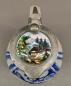 ungemarkt, Westerwald, grauer Scherben, handabgedreht, bauchiger Korpus, seitlich Henkel, geometrisches Ritzdekor, grau salzglasiert und kobaltblau bemalt, Zinnklappdeckel, minimale Beschäd., H40cm