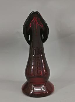 farbloses Glas rubinrot Unterfangen, mundgeblasen mit Bodenabriss, Mündung blütenkelchförmig gelappt, H 30cm