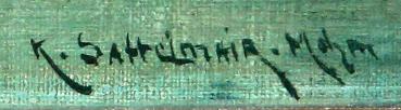 re. u. sign. K. Sattelmair. [...] München (wohl Karl Sattelmair, 19./ 20. Jh., vgl. www.artprice.com), um 1900/1920, Öl / Leinwand, Blick über den Königssee auf Alpenkulisse, flotte Malweise, in reliefiertem Goldstuckrahmen (kleine Abplatzer an den Ecken), 92 x 66,5 / 80,5 x 54