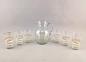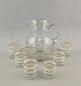 Klarglas mit umlaufenden Goldstreifen, Goldauflage, partiell weiß mattiert, Krug H 22 cm, Becher Goldrand teils berieben, eines mit Chip. H 12,5 cm