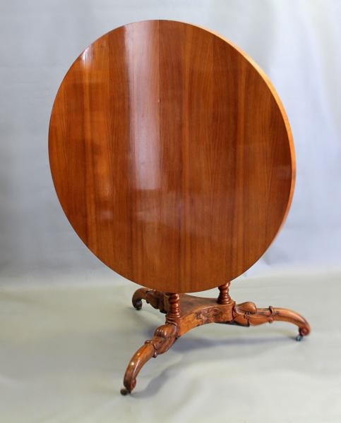 19. Jh., verschiedene Edelhölzer furniert und massiv, furnierte Platte mit geometrischem Spiegelfurnier, leichte Farbflecken, 3-passiges Gestell aus 3 gedrechselten Mittelsäulen und 3 beschnitzten Volutenfüßen auf Rollen, Mittelsegment mit attraktivem Wurzelfurnier verziert, Platte seitlich abklappbar, Altersspuren, wackelig, leicht verzogen, Gebrauchsspuren, 105 x 73 cm, KEIN VERSAND MÖGLICH! Bitte geben Sie beim Checkout die Option "Selbstabholung" an. Dieser Artikel wird nicht versendet. Bei der Option "Deutsche Post" kommt kein Kaufvertrag mit Lieferung zustande. Sie können diesen Artikel nur abholen oder eine Spedition mit der Abholung beauftragen. Gern empfehlen wir Ihnen ein Unternehmen, mit dem wir seit langem gut zusammenarbeiten.