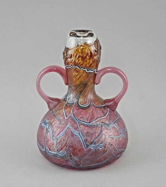 Mitte 20.Jh., mehrfach über-/unterfangenes Glas, schlierige, bunte Aufschmelzungen, irisiert,am Boden Signatur, H22cm